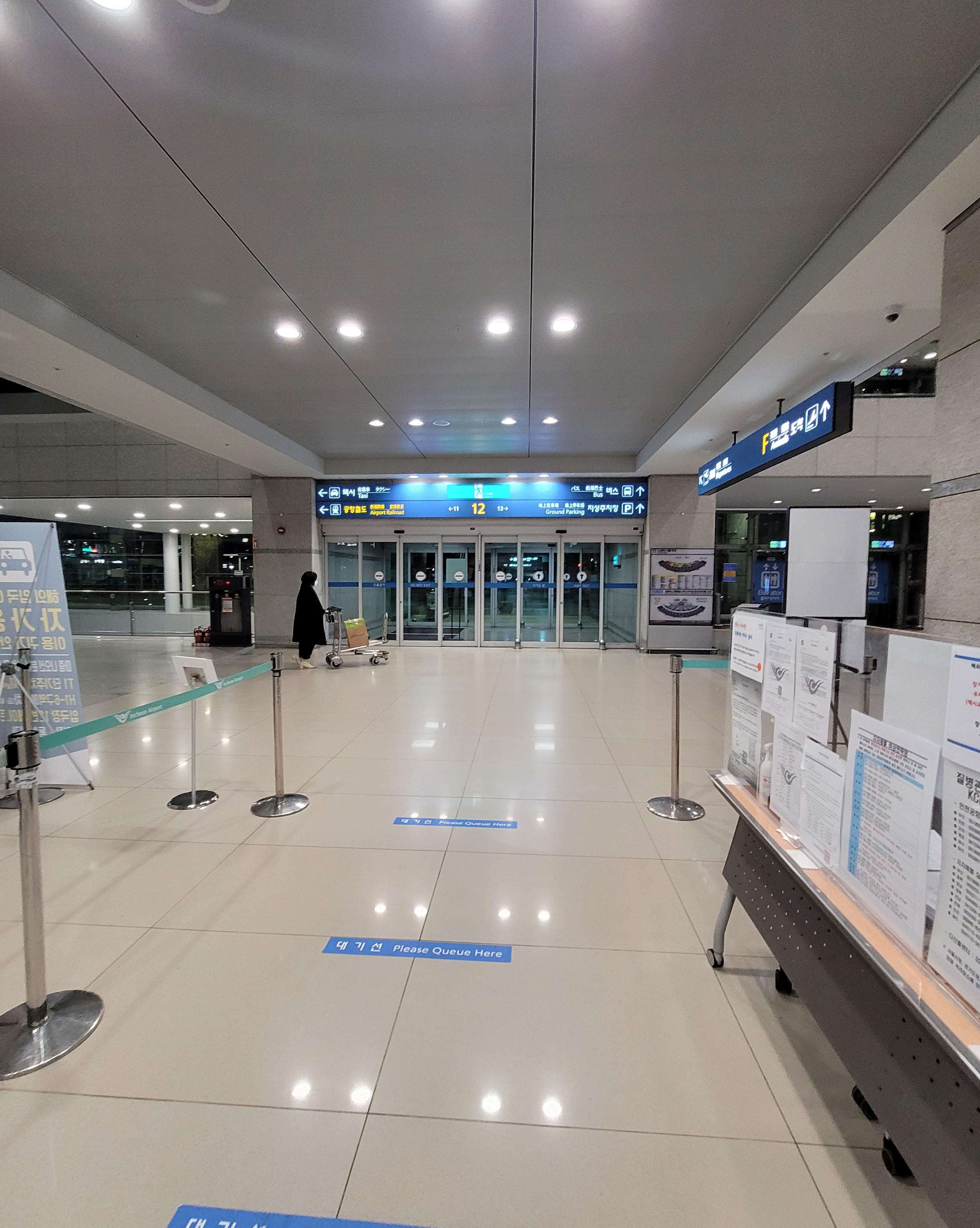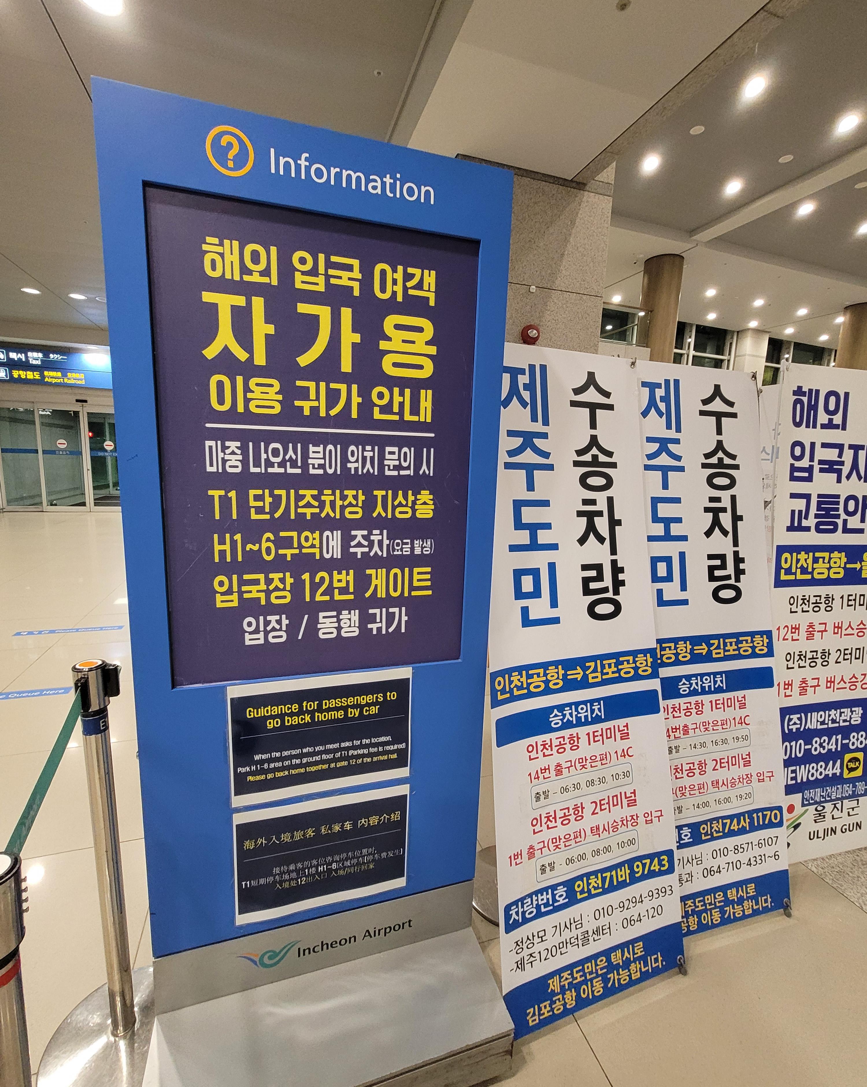 저기 근무자 분들이 해외입국객 식별 스티커를 붙여주면서 교통안내를 해주십니다.